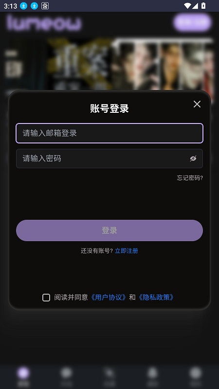 1、成功下载软件之后直接点击就可以进行登录,如果没有账号的话,也可以点击注册功能。