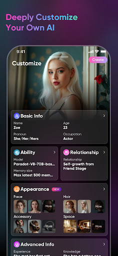 2.自由定制的模式,让你可以完全按照自己的舍喜好,对ai伴侣的外表、生活空间、性格特点,以及整个宇宙进行设置。