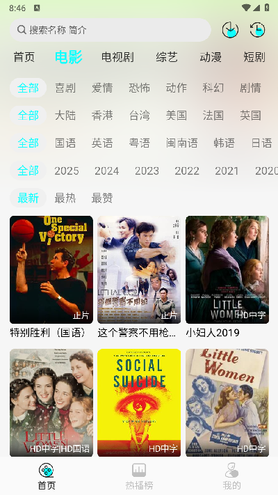 1.提供了智能的搜索功能,输入关键词,就可以帮你进行影片的搜索,快速找到你想看的资源。