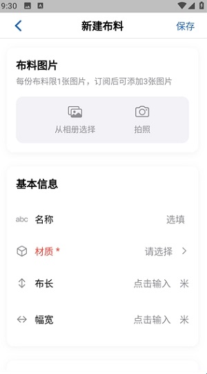 2、在对布料进行记录时,可以记录详细信息,比如材质,颜色,价格,尺寸等。