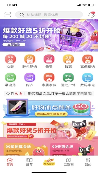 惠及万家app为用户呈现了海量优质的商品,能够从中进行自由的选择,非常重要的是每天都会有海量的优惠活动更新在平台上,用户可以加入到自己感兴趣的活动之中,可以让用户通过平台轻松完成购物,并且在家中就可以等待货物的送达。
