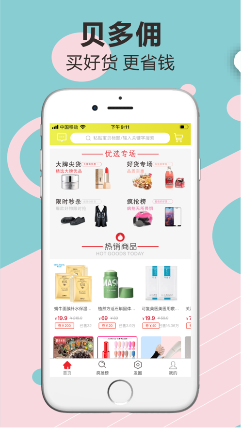 现在生活水平逐渐提高,大家想要花钱的地方有很多,通过贝多佣这款app可以更加省钱购物,也不会过多花用户们的金钱,尤其在双11的这个时候,很多人都想买买买,那么大家都可以通过这款app来购买哦,享受超高的折扣价。