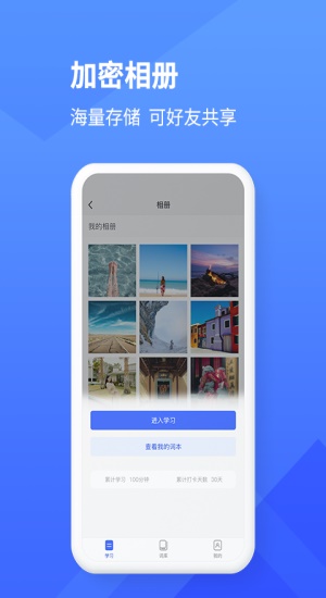 3.可以海量存储图片、照片、视频文件,释放手机内存,相册可与好友共享,分享学习乐趣。