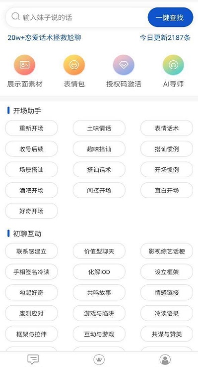 1.有适合不同场合的聊天话语,可以帮助用户快速掌握各种聊天技巧。
