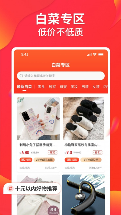 趣领吧app,每天都有大量的优质产品为你推荐,而且还有多个丰富的商品活动让你参加,各种优质好物随心挑选,上千万个优质店铺,商品种类丰富,能够满足不同用户的购物需求,大量的优惠券免费领取,不用花冤枉钱,就可以购买到低价的优质商品。