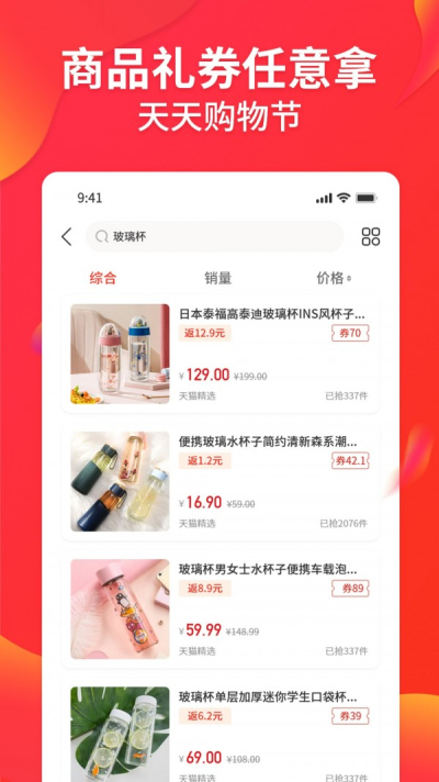 软件与多家大型电商平台合作,也有天猫淘宝,还有京东拼多多等等,里面的商品在这里都可以找到,而且还有很多非常实用的优惠券,在你购买的同时先搜索优惠券,用优惠券抵扣,为你省去不少的钱哦。