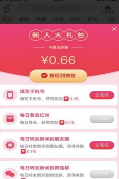这里的任务非常的简单,只要你动动手指,转发和分享新闻和一些文章即可,这是第三方账户登录,把上面的新闻分享到朋友圈,让更多的好友看见,这样如果他们点击浏览的话,你就会有佣金奖励。