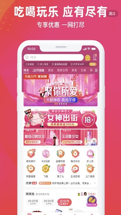 2.商品销售:每天都会实时推荐数以万计的带有优惠券的高质量产品;
