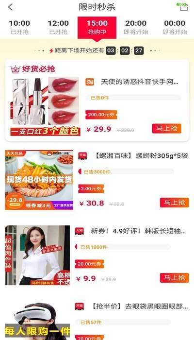 这里的商品齐全软件内还有非常多的活动对用户们都非常的有益处,这里还能够领取超多大额的优惠券用户使用起来也非常的方便,可以轻松的购买到自己需要的商品,喜欢购物的用户快来下载使用吧。