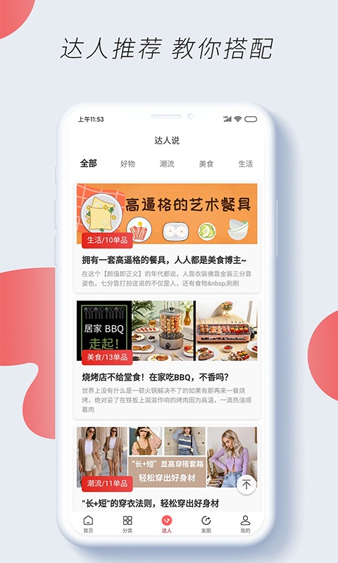 1.达人推荐:网聚时尚买手,推荐达人专属品质生活