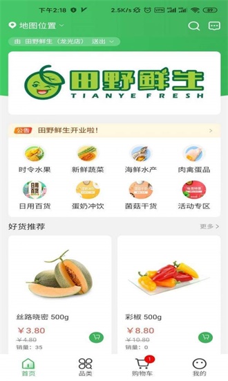 田野鲜生是一款实惠的手机商场,商城内有大量的新鲜蔬菜水果,用户可以在这里查看附近的线上商城,方便快捷的浏览里面的蔬菜水果不用跑来跑去的,超多的产品用户可以一键查看,方便快捷的对比各个店铺的价格选择自己喜欢的进行购买,还有专业的配送人员将商品送到你的手中。