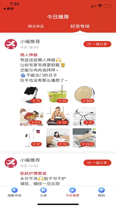湘集惠购是个购物优惠的软件,平台当中每一天都会出现很多品牌商品,每个商品都有一定的优惠券,不管在何时可以随时在线上领取,里面有很多品质好的物品随时都可以挑选,每一天都会出现一些专属的大牌优惠券,里面可以说从衣食住行各个方面全部都有。