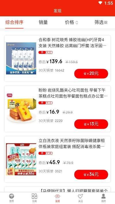 1.完整的优惠券类别,全面的优惠券类型,惠买购物应用每天滚动更新,不断提供折扣。