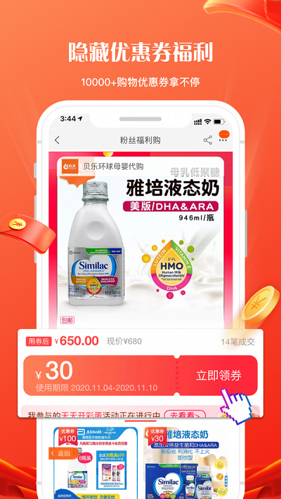 1.平台上还有还会发放大量的专属优惠券,下单时使用价格更低。