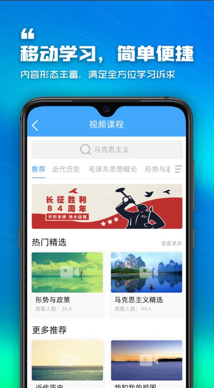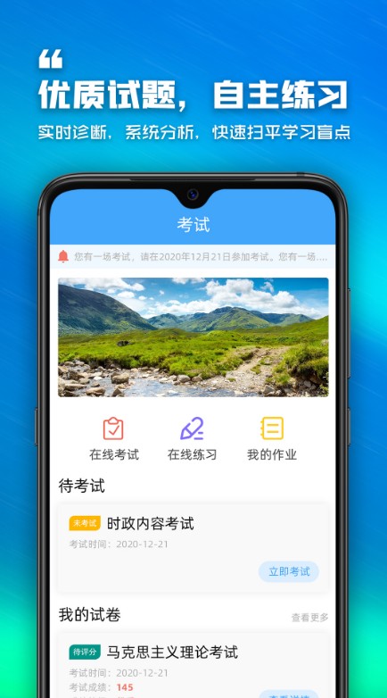 2.同时,学生可以在手机上学习思想课,并完成相应的考试和作业;