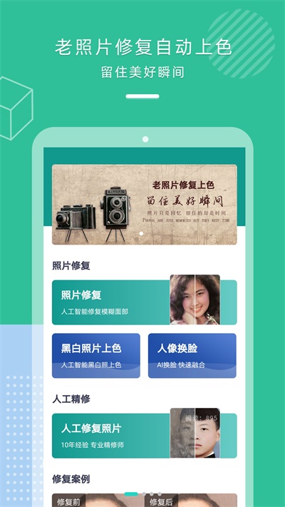 对于以前的黑白照片画质不是那么的清楚,但这些照片又是你那些美好的回忆的,不舍得丢掉它,那为什么不试试这一款黑白照片上色修复手机APP软件,通过对黑白照片进行上色,智能修复等专业的照片修复功能,让你的黑白照片变得绚丽多彩,充满了新鲜感。