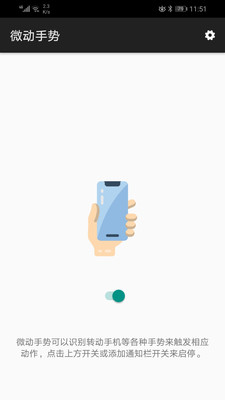 微动手势是一款可以让用户通过非常简单的操作手势来控制手机的APP,不想动手点击屏幕的时候就可以通过一些细微的操作来执行,并且系统的识别功能是非常强大的,灵敏度也很高,不同的手势将提供不同的功能,用户可以按照个人的需求去设定。