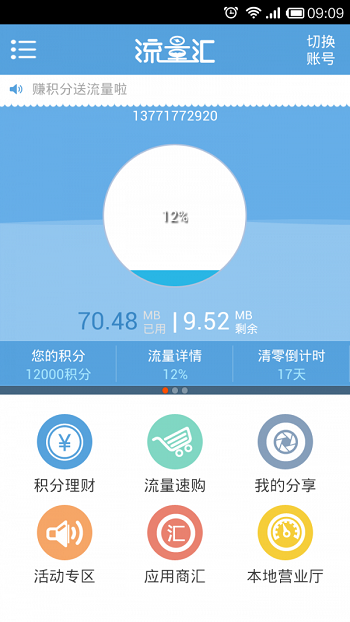 流量汇这款APP可以帮助用户非常快速的检测流量,同时做到了实时的更新,用户只需要拿出手机就可以看到自己当前的流量剩余情况,并且更加有选择的去使用,系统还会在月底的时候为用户进行结余清单的推送,所有的设计都是非常人性化的。