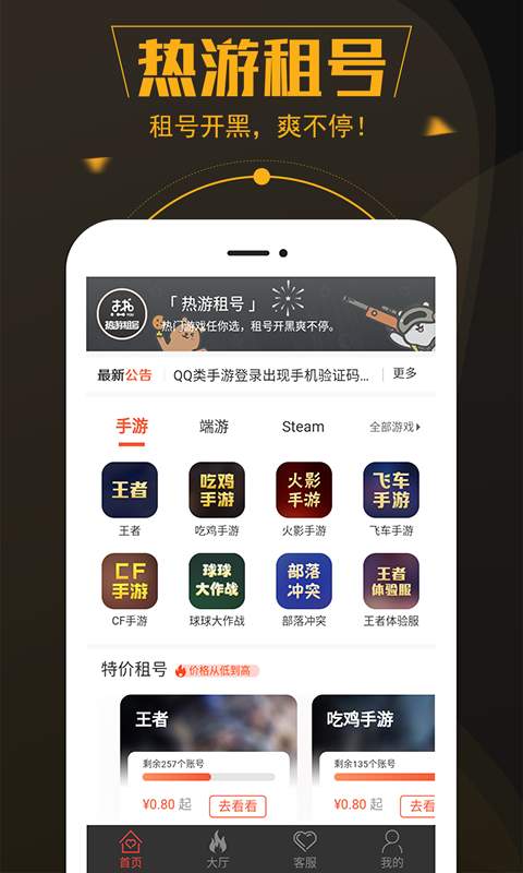 《热游租号》软件亮点: