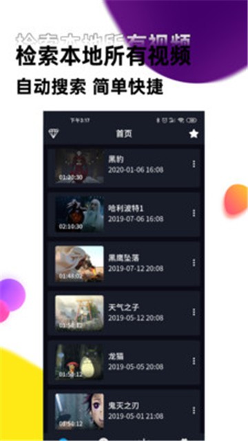1.检索所有本地视频,该软件可以在您的手机上查找所有视频,自动搜索,简单快捷。