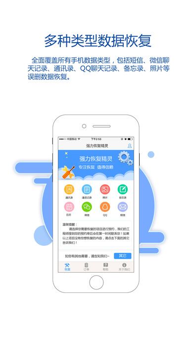 强力恢复精灵这是你能够帮助用户快速的恢复自己的各种手机数据的软件。这里面还有自动备份和备份提醒的功能,让用户能够时时刻刻保住自己想要的各种资料信息,不会因为一时的手误或者不小心的操作丢失自己的各种重要数据。