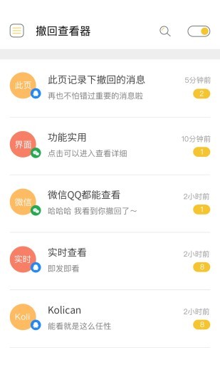 聊天的过程中对方如果撤回了消息,我们就无法看到他发送的是什么,出于好奇心的我们就可以使用撤回查看器这款APP,能够快速的将对方撤回的消息重新展现出来,使用起来方便,并且功能非常的强大,没有繁琐的操作步骤,只需要简单的点击就可以恢复。
