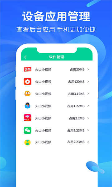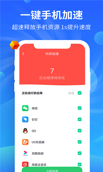 3.一键发布手机后台应用程序,提高手机运行速度。