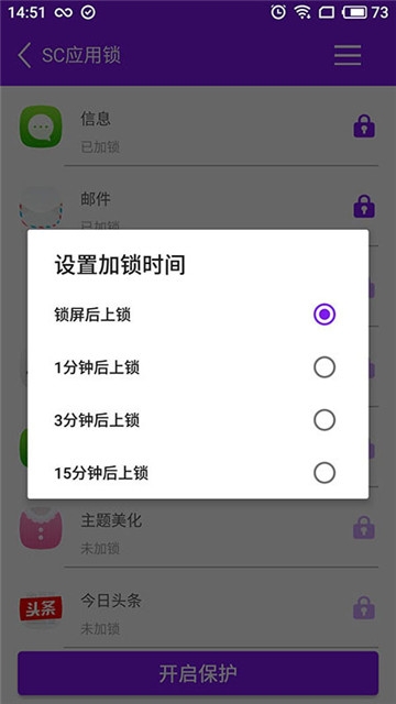 不论是职场新人还是个人用户,手机里总会有一些隐私内容或者重要的文件,而SC应用锁app就是一款非常好用的应用加密软件,用户在这里可以对自己的私人软件进行加密,以防别人翻看你的手机,支持多种不同的应用程序,可以给各种不同的软件来进行加锁并保护隐私,简单便捷,需要的朋友可以下载来体验一下。