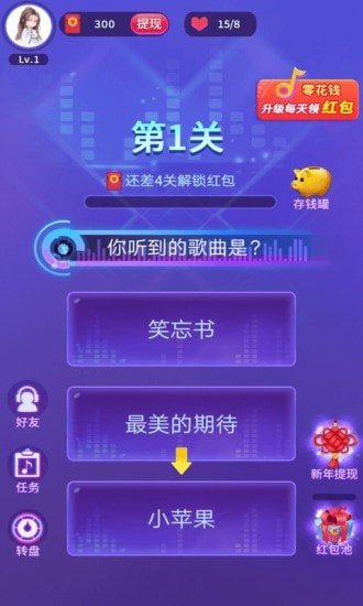 2.听到各种不同的歌曲,释放心脏的压力,并迅速选择正确的答案;