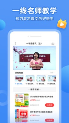 1.[综合课程]最全面的的语文学习软件,包含了课文朗诵点读、生字组词成语、单元巩固练习等。