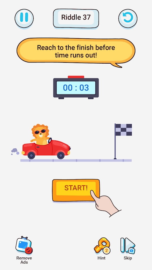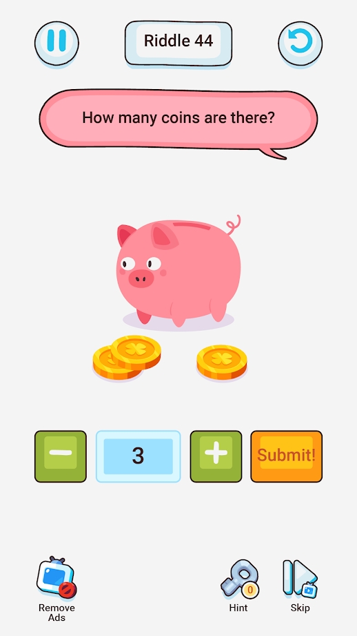 在脑谜棘手的难题这款游戏中玩家可以开动自己的脑筋解决各种各样的难题,画风十分的清爽简约,更具有不同难度的关卡,可以在游戏中展现自己的实力,通过不断的挑战提高自己的脑力,成为一名解题达人,还需要注意不能从正常思维解答。