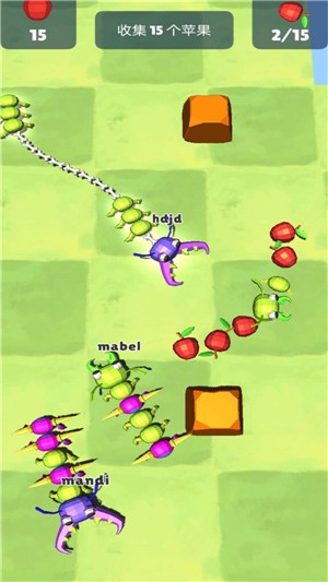 玩家的主要目的就是收集苹果,关卡中还会有其他的角色需要与你同台竞技,看谁收集的苹果数量最多,实力最强大的玩家获胜,这样的话就需要玩家熟练的移动角色的身体,对手会一直阻碍你收集苹果,你要加快移动身体的操作解除危机,游戏关卡很多,你可以慢慢挑战。