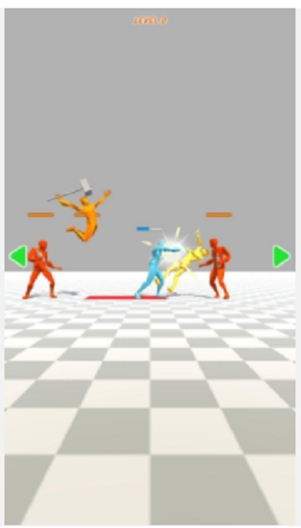 游戏的战斗场面非常的混乱,玩家们只有存活到最后一刻,才能够成为最终的赢家,所以在攻击敌人的同时,玩家们也要时刻提防敌人偷袭自己,玩家们还可以快速的拾取关卡中的武器,让自己可以使用各种不同的武器和敌人进行战斗。