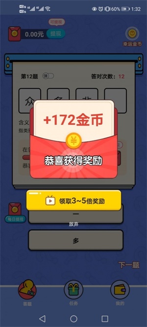 3.红包版猜谜成语可以通过近期的突破赢取大量金币,解锁不同的道具给你更多提示。