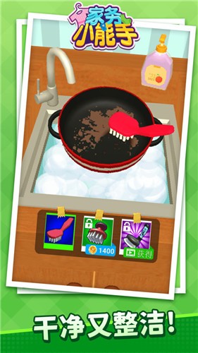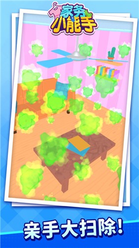 家务小能手这款专为小孩子打造的休闲小游戏,游戏中需要玩家利用各种清洁工具,完成各种清理任务,边娱乐的同时边get到更多的做家务技能,游戏中的好多任务都是来源于生活哦,游戏提供各种道具,合理利用,可以更快的帮助你完成家务!