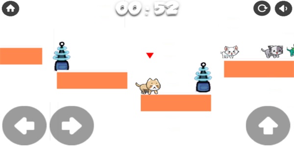 这是一款全新的闯关小游戏,主题的设置是非常的新颖独特的,喜欢小猫的玩家,这款游戏一定会是大家喜欢的哦,在这里利用小猫跳跃的特性,去合理的完成各种挑战,难度不大,不同年龄段的玩家都可以在这里尝试体验!