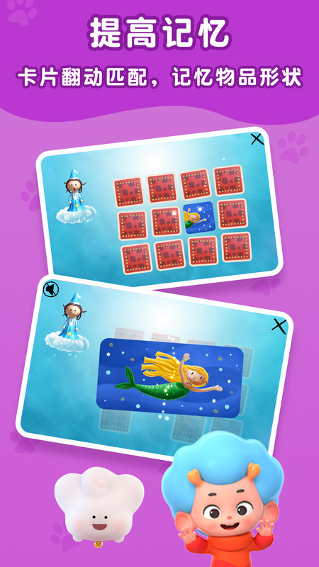 1.通过连接星星来学习绘画,通过反转卡片来锻炼记忆,通过对物体进行分类来学习形状。