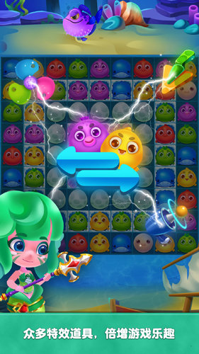 1.经典淘汰赛规则:游戏中,交换相邻的鱼,横向或纵向连接3条或更多同种鱼。