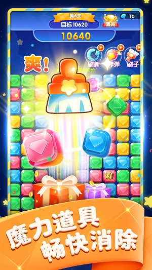 每一关都会带给玩家全新的消除体验,并且能够拥有眼前一亮的感觉,整个界面设计非常的独特,所出现的宝石元素会越来越多,很适合在闲暇时光来上一局,伴随着轻快的背景音乐,在屏幕上滑动手指对元素的位置进行移动。