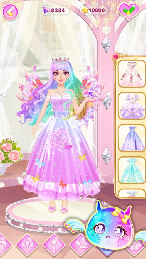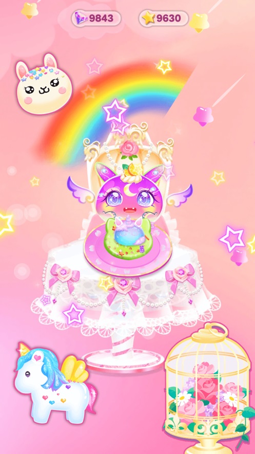 3.为冰雪公主角照料可爱的彩虹独兽宠物;
