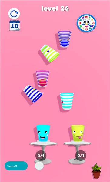 杯子扔球是一款很解压的小游戏,该游戏的难度还是很低的,关键非常轻松,适合多个不同年龄段的玩家,该游戏的画风很可爱,也非常清新,这个游戏里面有海量关卡等着你来突破,从简单到困难,你能否在一天之内通关呢?