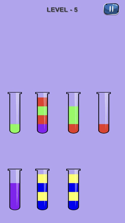 整体氛围非常的轻松愉悦,可以在游戏之中展现出自己迅速的观察能力与操作能力,将不同颜色的沙子倒入合适的试管之中,会有很多的关卡让玩家能够挑战自己,更可以在游戏之中听到非常轻快的背景音乐,闲暇时刻就可以来上一局。