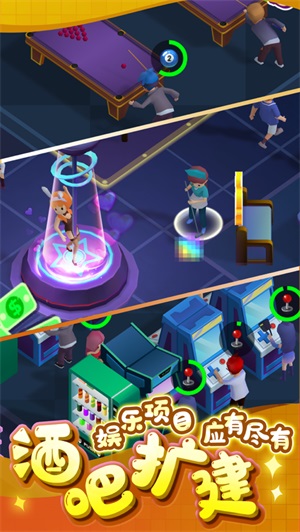 3.作为老板,玩家可以在酒吧增加各种盈利设施,获得更多利益,进一步发展。