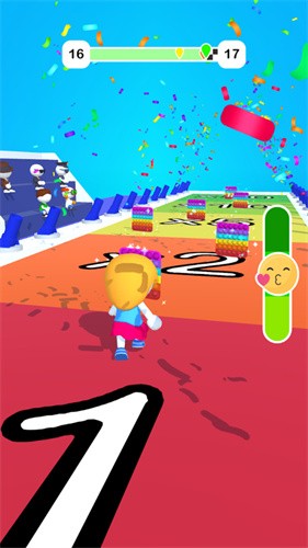 泡泡比个快就是一款比拼速度的跑酷小游戏,以最短的时间到达终点,获得最高的分数,赢得比赛的第一名,每个关卡的最终目标都是迅速到达终点,但是每一关的场景设计不同,障碍不同,惊喜不同,所以每一关对决大家来说,都是全新的挑战