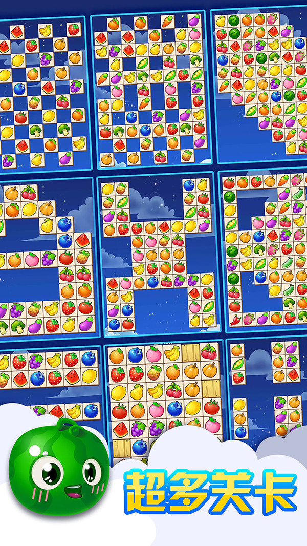 连连看水果消除是一款消除水果的休闲小游戏,点击相同的两个水果,不超过三个步骤就可以消除了,主要的模式是闯关模式,在刚开始的时候会比较简单,越到后面关卡难度会越来越大,需要玩家动动脑筋,有策略地去进行游戏。