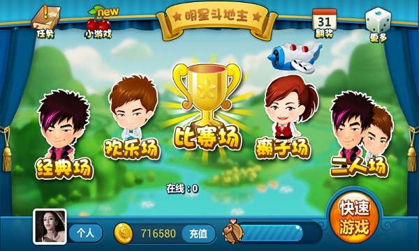 明星斗地主2015是一款非常经典的棋牌游戏,在这款有中有很多的角色设计,3D角色都是大家非常熟悉的面孔,大家可以在这里选择自己喜欢的明星做为自己的角色,游戏的操作非常的简单,多元化的游戏玩法,玩家也可以自由的选择,精美的画面,还有非常有趣的配音,让你在这里享受游戏!