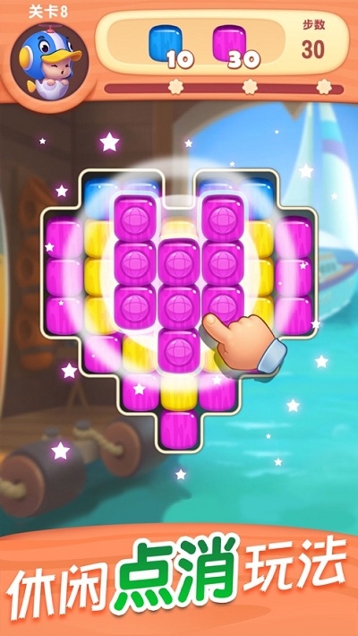 1.游戏具有非常简单的操作方法,将相同的方块连接即可消除它们。