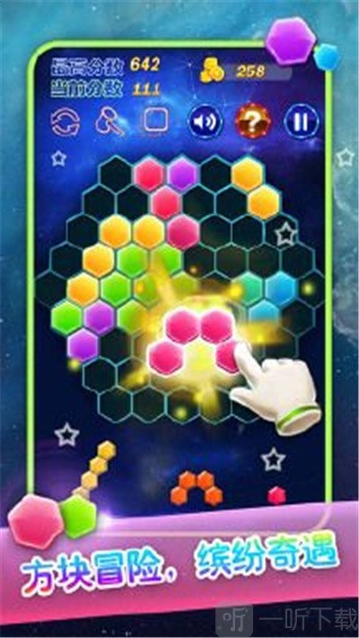 消除类游戏大家一定都非常熟悉了,动动手指就可以感受到乐趣,今天这款六边形消消消游戏却采用了不太一样的玩法,游戏中的元素全部是六角形,玩家需要手指拖动这些元素来改变它们的位置,将它们放置在合适的地方,当填满空缺时就可以进行消除了。