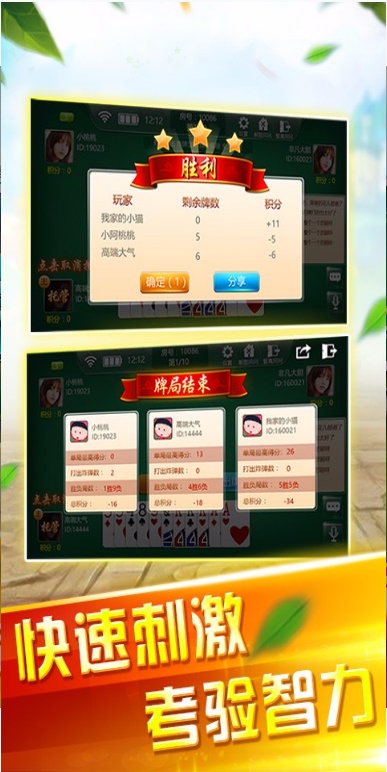 1.可语音对话,与全国各地的纸牌朋友玩纸牌,以满足各种人群的需求。