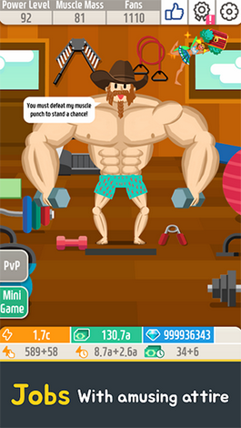 肌肉王养成记2是一款非常好玩的养成游戏,在这个游戏中我们会看到非常多的角色,我们可以根据自己的喜好选择不同的角色,在这里选择好角色以后就要对角色进行不停的锻炼,让他们的肌肉看起来越来越发达,让整个人物看起来越来越强。